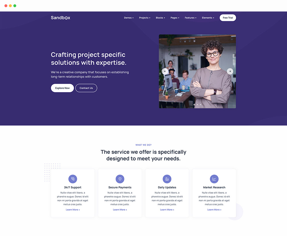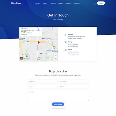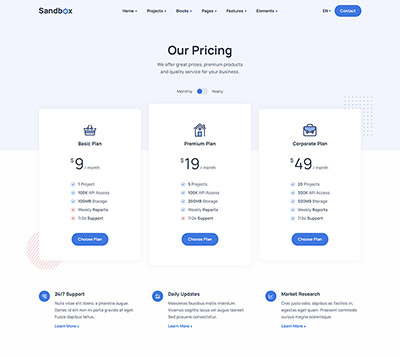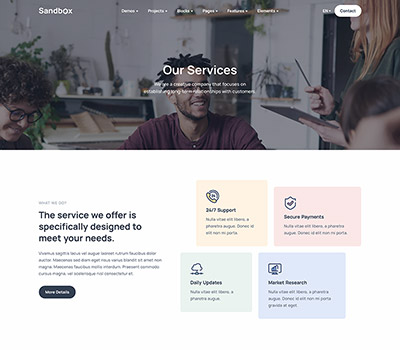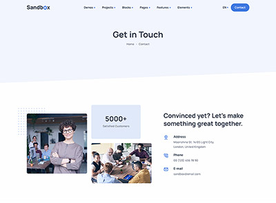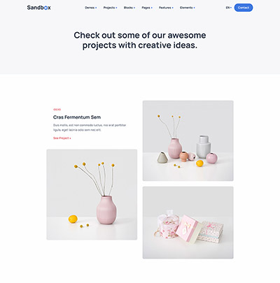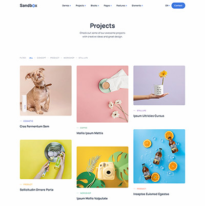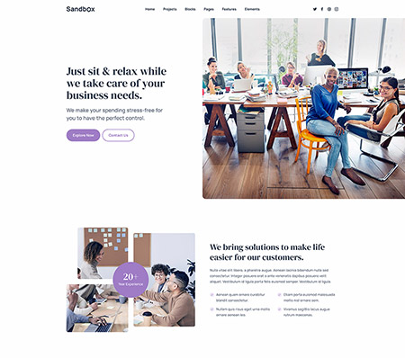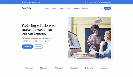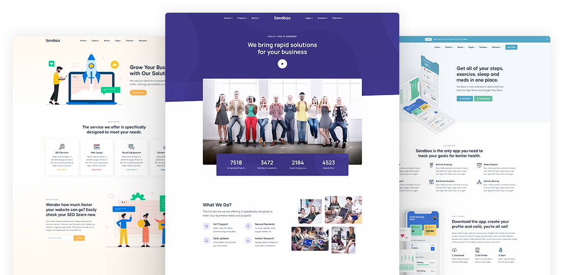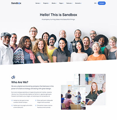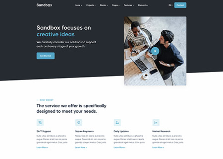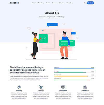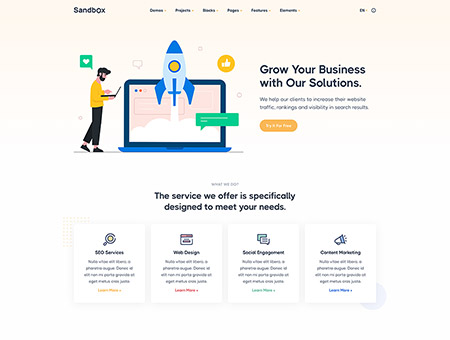 Sandbox includes amazing features and elements to create rich and attractive pages.